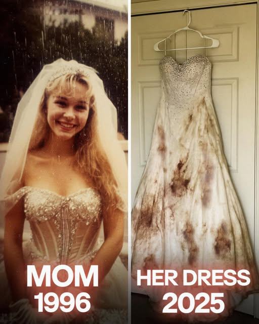 He spent the next four days tracking down fabric artists, vintage lace dealers, seamstresses who could work miracles. Meanwhile, I sat on the floor, clutching the ruined dress and that photo of Mom in the rain.