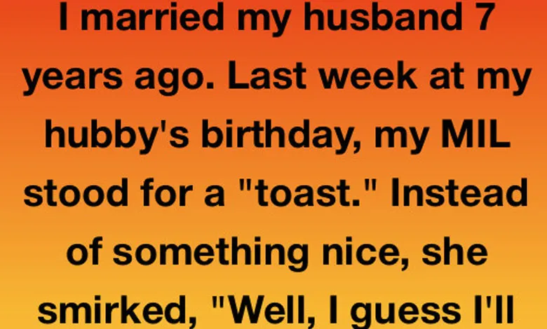 I married my husband 7 years ago. Last week at my hubby’s birthday, my MIL stood for a “toast.” Instead of something nice, she smirked, “Well, I guess I’ll be waiting forever for grandkids.” People laughed; my face burned. I set my glass down, stared at her, and said “Actually, you won’t.”