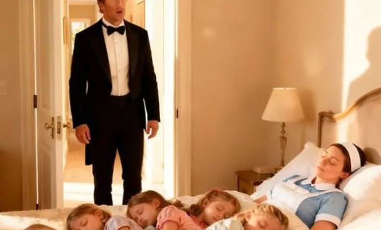 Six girls stood watching from the stairs. Hazel, twelve, her posture rigid. Brooke, ten, pulling at her sleeves. Ivy, nine, eyes darting. June, eight, pale and quiet. The twins Cora and Mae, six, smiling with too much intention. And Lena, three, clutching a torn stuffed rabbit.