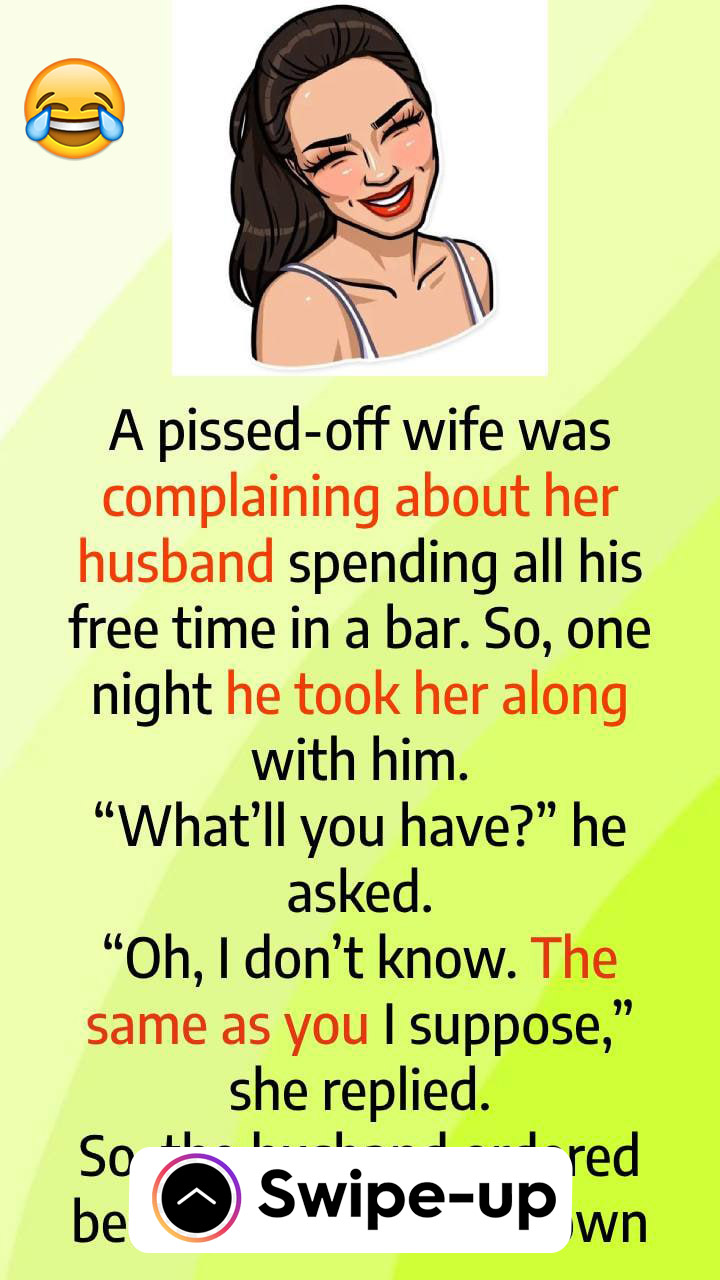 A pissed-off wife was complaining about her husband spending all his free time in a bar. So, one night he took her along with him.