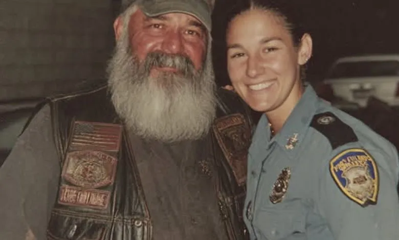 The biker froze as the officer cuffed him, her badge catching the light: Officer Sarah Chen. The name stole his breath. She’d stopped him for a broken taillight on Highway 49—routine, ordinary—until she stepped closer and the world tilted. Same eyes as her grandmother’s. Same crescent-moon birthmark below her ear, the one he used to kiss every night before her mother vanished thirty years ago.