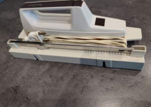 It looks like a vintage iron with a lovely floral pattern, but don’t be fooled: this is actually an electric kitchen saw, designed not just for ironing but for slicing with precision.