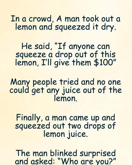In a crowd, A man took out a lemon and squeezed it dry.
