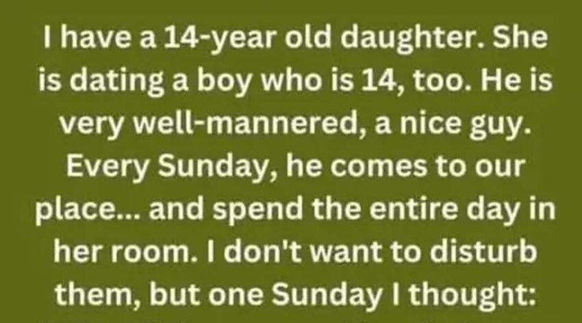 Every Sunday, he comes to our place… and spends the entire day in her room. I don’t want to disturb them, but one Sunday I thought: “What if they are making their own kids there?!” So I ran to her room, I opened the door, the lamp was dimmed, and you know what I see? My daughter is…sitting on the floor, headphones on, completely absorbed in helping him study for his math exam.