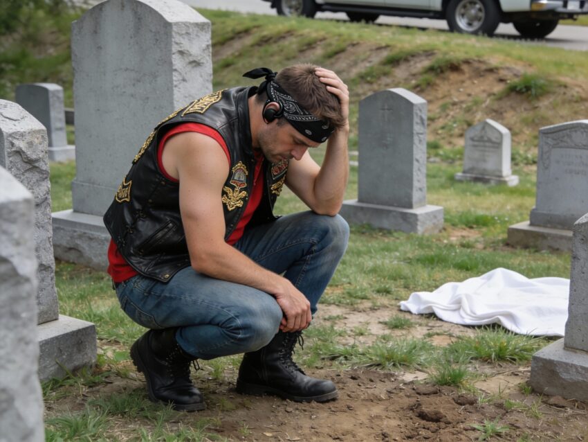 One Saturday, I couldn’t sit still anymore. Instead of watching from a distance, I stepped out of my car and moved toward him. My heart pounded so loudly it drowned out the rustling leaves. I rehearsed a dozen confrontational lines in my head, but when I reached the edge of the path, something froze me. The biker was crying. Not loudly—just a gentle, restrained shaking of his shoulders. I had never seen another man cry at her grave before. I couldn’t make myself interrupt. I walked away.