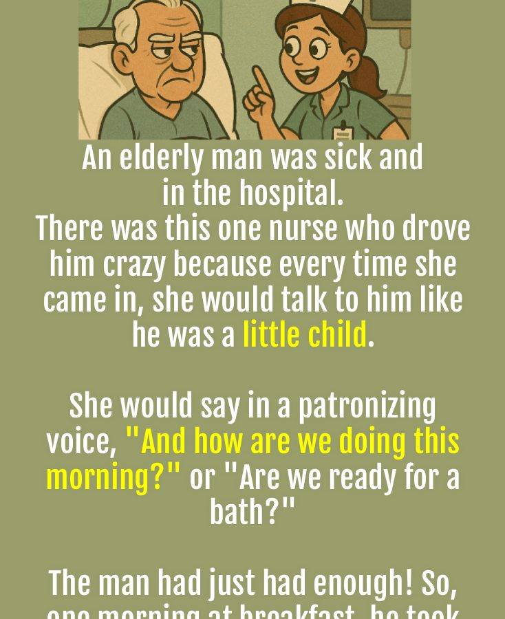 There was this one nurse who drove him crazy because every time she came in, she would talk to him like he was a little child.