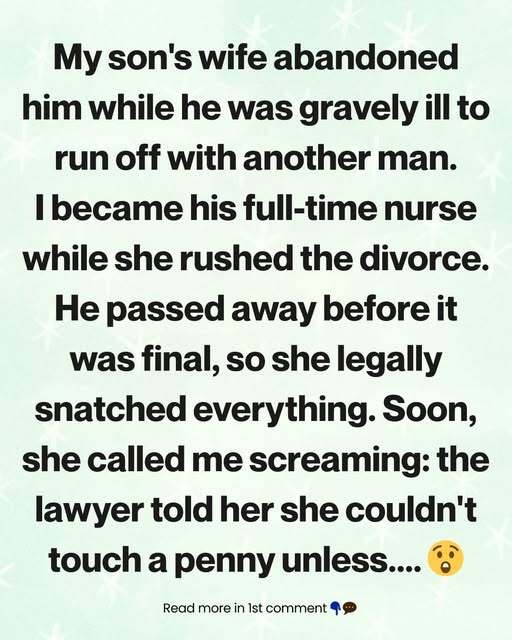 But she couldn’t access a single cent until she fulfilled one condition my son had added after she left. She had to return everything personal he had ever owned. Every letter.