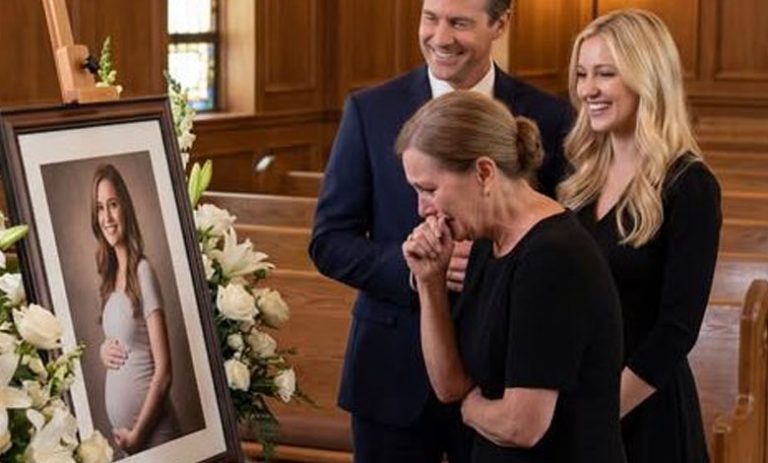 I entered St. Mark’s Funeral Home with my fists clenched so tightly my wedding band pressed painfully into my skin. Emily Carter should have been choosing crib sheets and nursery paint, not resting in a gleaming mahogany casket, her eight-month belly still visibly round beneath the satin lining. I kept telling myself I would wake up from the call two nights earlier: “Mrs. Carter, there’s been an accident.”