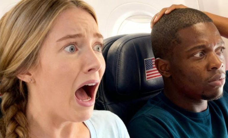 Most of the cabin was asleep—heads tilted against headrests, thin airline blankets pulled up to chins, seatback screens throwing that soft blue glow onto faces that weren’t really watching anything. In 8A, a Black man in a wrinkled gray sweater slept with his temple pressed to the cold oval window, his reflection faint against the endless dark outside.