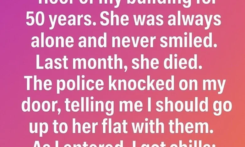 For as long as I can remember, a woman lived alone on the 8th floor of my building. She had been there for fifty years—quiet, distant, never smiling. Most neighbors barely noticed her, and those who did whispered about her loneliness.