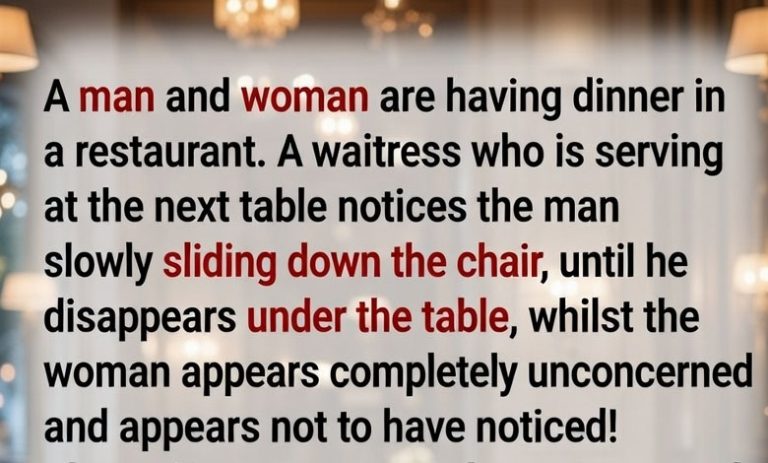 Their waitress, taking another order at a table a few paces away noticed that the man was slowly sliding down his chair and under the table, with the woman acting unconcerned. The waitress watched as the man slid all the way down his chair and out of sight under the table. Still, the woman dining across from him appeared calm and unruffled, apparently unaware that her dining companion had disappeared.